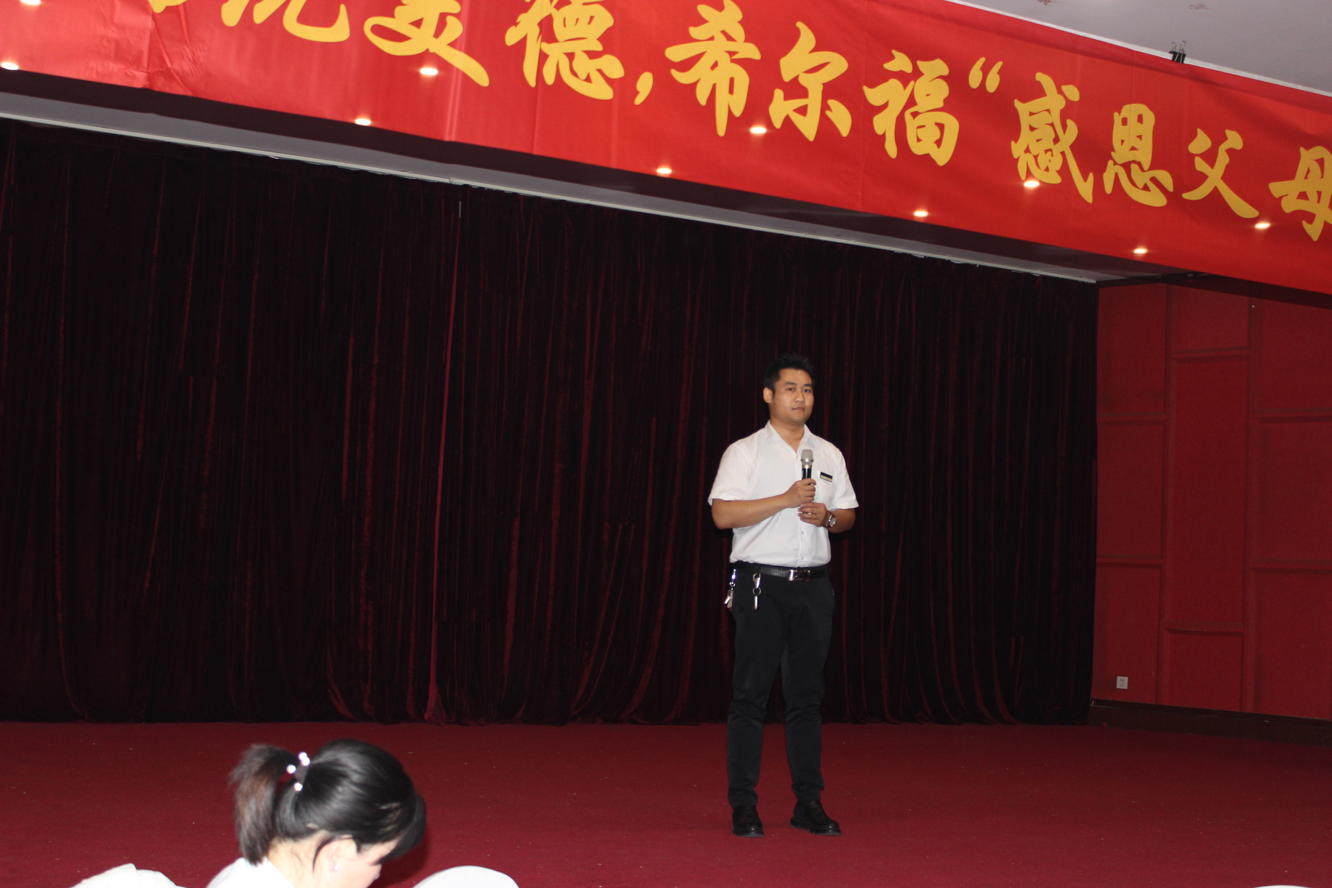 活動開始后公司總經(jīng)理趙海濤,副總經(jīng)理顏東分別講話,多次闡述“感恩父母,尊老敬老” 的主題思想。做兒女的不但要滿足父母的物質(zhì)生活需求,而且要盡心盡力滿足父母在精神情感方面的需求。特別對年邁的父母,更要精心照顧,細心安慰,處處孝順。